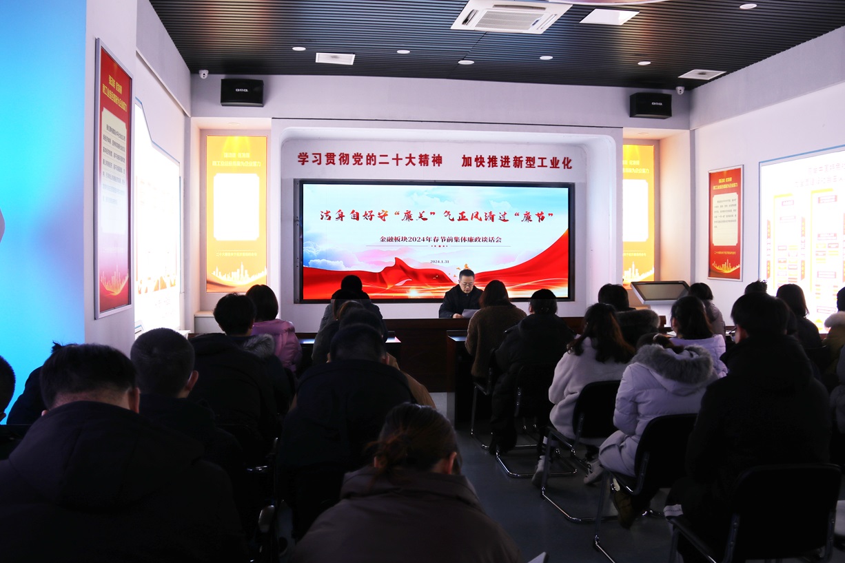把“廉關(guān)”,過好迎新“廉潔年”。清心為治本,直道是身謀。金融板塊從金融領(lǐng)域的特殊性出發(fā),本著廉政談話全覆蓋的原則,緊盯春節(jié)節(jié)點(diǎn)、緊盯常見“節(jié)日病”,要求黨員干部以上率下,嚴(yán)格要求自己、嚴(yán)格帶好隊(duì)伍,守好責(zé)任田,管好身邊人,做到過節(jié)不忘警惕,過節(jié)不忘紀(jì)律,過節(jié)不忘盡責(zé),嚴(yán)格執(zhí)行中央八項(xiàng)規(guī)定,時(shí)刻保持自省、自警、自律、自勵(lì),清廉過節(jié),堅(jiān)決杜絕“節(jié)日腐敗”。