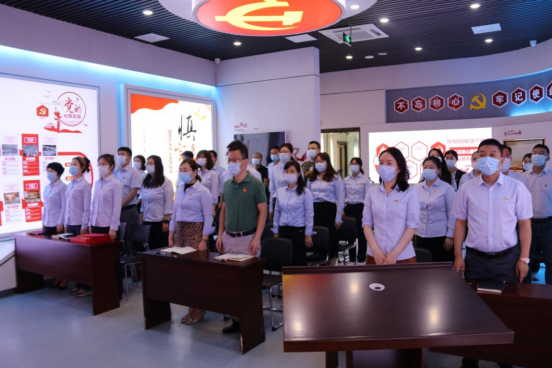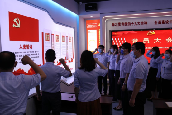 新老黨員一起面向鮮紅的黨旗,重溫入黨誓詞。莊嚴(yán)隆重的氛圍,鏗鏘有力的誓言,使全體黨員更加堅定了為黨和人民事業(yè)奮斗終生的決心。