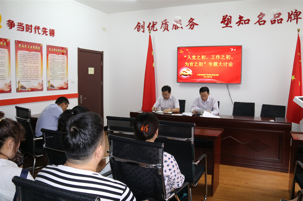 | 為貫徹落實集團(tuán)黨委、公司黨支部“不忘初心、牢記使命”主題教育工作部署,進(jìn)一步抓好學(xué)習(xí)研討,加深全體黨員對“十二字”總要求的理解把握。9月26日下午,公司黨支部組織領(lǐng)導(dǎo)干部及全體黨員開展“入黨之初、工作之初、為官之初”專題大討論。