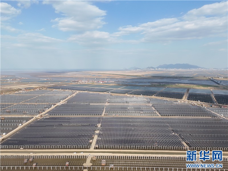 近日,在連云港經(jīng)濟技術開發(fā)區(qū)猴嘴街道三峽青口鹽場,近78萬塊光伏板如波浪般起伏,深藍色板面倒映著魚塘的波光,蔚為壯觀。