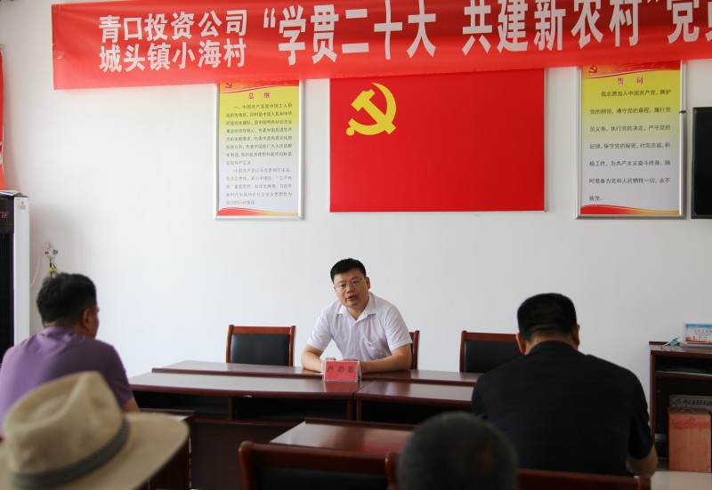 為推動黨的二十大精神在鄉(xiāng)村落地生根,6月28日上午,青口投資公司、城頭鎮(zhèn)小海村聯(lián)合開展“學(xué)貫二十大 共建新農(nóng)村”黨員課堂,由公司機(jī)關(guān)優(yōu)秀黨務(wù)干部組成的二十大精神宣講隊,走進(jìn)結(jié)對共建的贛榆區(qū)城頭鎮(zhèn)小海村開展集中式、通俗化宣講。公司黨委副書記、工會主席梁永,城頭鎮(zhèn)副鎮(zhèn)長王延光,城頭鎮(zhèn)小海村支部書記徐坤參加活動。