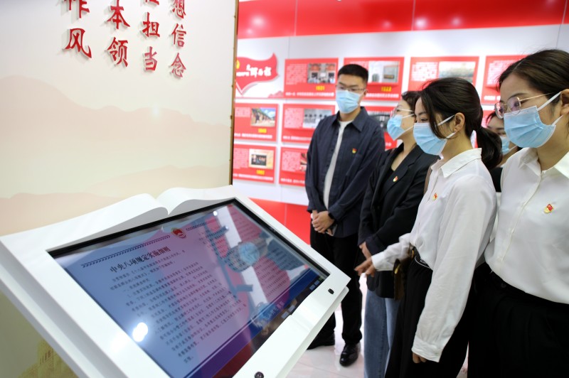 首站,青年干部們來到海州區(qū)檢察院,接受警示教育洗禮。在講解員的帶領(lǐng)下,大家先后參觀了融媒體中心、黨員干部廉潔教育基地、廉潔教育互動(dòng)點(diǎn)播等展廳,回顧了中國共產(chǎn)黨的光輝歷程,并運(yùn)用“正面典型+反面案列”相結(jié)合的方式,通過以案說紀(jì)、以案釋法,教育引導(dǎo)青年干部以此為鑒、吸取教訓(xùn),自覺抵御各種誘惑,扣好廉潔從業(yè)的“第一??圩印?。