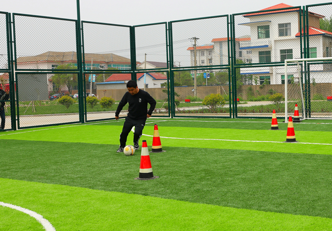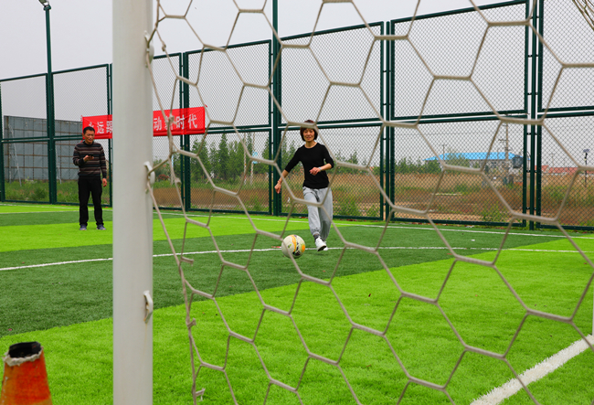 在定位傳球射門比賽中,隊(duì)員們對準(zhǔn)腳下的足球,快速傳導(dǎo),精準(zhǔn)將足球射入球門。