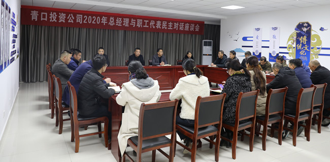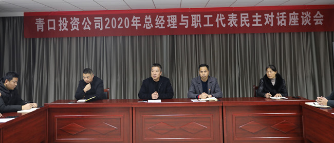 12月9日下午,在泰祥公司二樓會議室召開青口投資公司2020年總經(jīng)理與職工代表民主對話座談會,公司總經(jīng)理史祥平出席會議,工會主席梁永主持。職工代表們就工作中遇到的困難、生活福利保障、員工培訓(xùn)、公司未來規(guī)劃等熱點難點問題向總經(jīng)理提問,總經(jīng)理史祥平在耐心細致聽取職工代表們的問題后,一一詳細解答。