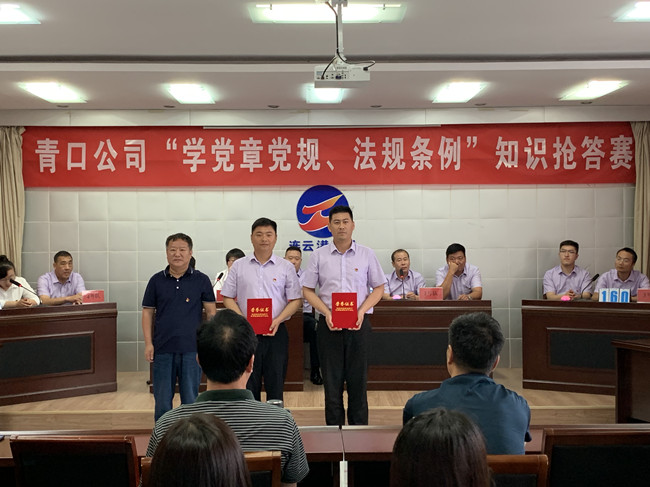 為推動黨員干部進一步掌握基本標準,增強黨的意識、黨員意識、紀律意識,更好地堅守初心、踐行使命,6月23日上午,青口公司舉辦“學(xué)黨章黨規(guī)、法規(guī)條例”知識搶答賽活動。來自公司8個支部的24名選手參加了比賽。公司黨委班子成員出席了活動。機關(guān)全體管理人員、各單位黨政工負責(zé)人到場觀看。