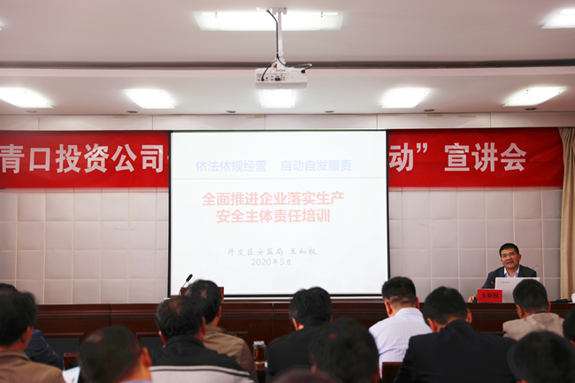 ? 為進(jìn)一步強(qiáng)化企業(yè)落實(shí)安全生產(chǎn)主體責(zé)任意識(shí),推動(dòng)企業(yè)深入學(xué)習(xí)貫徹《企業(yè)落實(shí)安全生產(chǎn)主體責(zé)任重點(diǎn)事項(xiàng)清單》,5月14日下午,青口投資公司組織召開(kāi)安全生產(chǎn)“春風(fēng)行動(dòng)”宣講會(huì)。公司領(lǐng)導(dǎo)班子成員、安委會(huì)成員、各單位黨政工負(fù)責(zé)人、安全管理人員和機(jī)關(guān)全體管理人員參加,副總經(jīng)理?xiàng)钍孛髦鞒帧?/span>