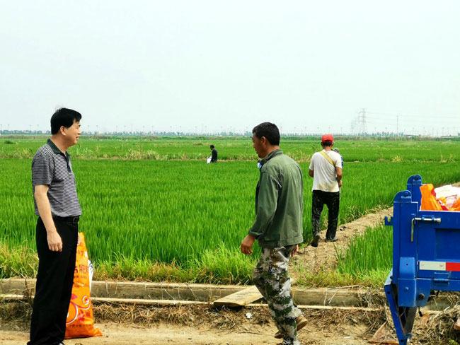 在大新水稻種植現(xiàn)場(chǎng),胡書(shū)記認(rèn)真查看了各家條田的水稻生長(zhǎng)情況,在農(nóng)場(chǎng)支部書(shū)記的陪同下,與田狀元趙華兵為首的四名共產(chǎn)黨員,在田頭親切交談,詳細(xì)詢(xún)問(wèn)病蟲(chóng)害防治和施肥等情況, 關(guān)心 條田工的生產(chǎn)和生活是否存在困難,特別是結(jié)合 “不忘初心、牢記使命”主題教育活動(dòng)在即 , 并現(xiàn)場(chǎng)掌握他們學(xué)習(xí)強(qiáng)國(guó)的使用情況,了解他們的真實(shí)想法,為黨建工作的開(kāi)展掌握一手資料。
