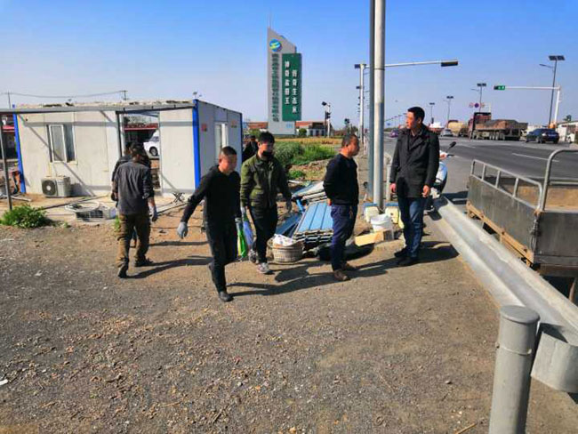 公司領(lǐng)導(dǎo)態(tài)度明確,一抓到底全面整治交通環(huán)境。摸清形勢(shì),多次召開(kāi)整治工作專項(xiàng)會(huì)議,安排部署整治行動(dòng) , 公司領(lǐng)導(dǎo)放棄節(jié)假日,現(xiàn)場(chǎng)辦公。三洋、黃沙、大新作為主要牽頭單位,主動(dòng)扛起責(zé)任,挑起擔(dān)子,從泰祥公司抽調(diào)人力,大家齊心協(xié)力。按照時(shí)間節(jié)點(diǎn),倒排工期,掛圖作戰(zhàn),針對(duì)現(xiàn)場(chǎng)工作內(nèi)容,制定 “三步工作法”。一是深入塘頭養(yǎng)殖戶面對(duì)面交流,講明利害關(guān)系,做通群眾思想工作,確保整治行動(dòng)順利進(jìn)行;二 是 制定好拆除先后順序,調(diào)配需要的挖掘機(jī)、運(yùn)輸車輛等硬件設(shè)施,確保拆遷過(guò)程快速有力;三 是 對(duì)于已拆除的看護(hù)房,及時(shí)清理房屋碎石塊,筑牢地基,安排重建。