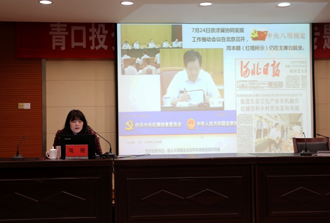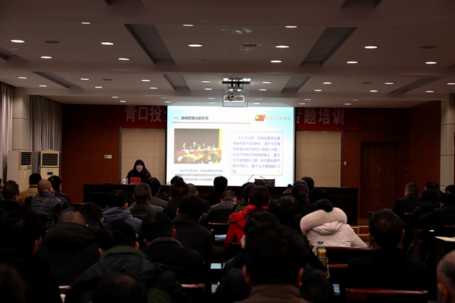 為進(jìn)一步強(qiáng)化作風(fēng)建設(shè),增強(qiáng)黨員干部廉潔從業(yè)意識, 1 月 11 日上午,青口公司邀請市紀(jì)委 黨風(fēng)政風(fēng)監(jiān)督室主任繩艷 作了題為《落實(shí)八項(xiàng)規(guī)定精神 從嚴(yán)從實(shí)改進(jìn)作風(fēng)》的專題報(bào)告,集團(tuán)紀(jì)委書記汪群、公司領(lǐng)導(dǎo)班子成員和全體在崗黨員參加此次講座,講座由黨委書記、董事長胡傳法主持。