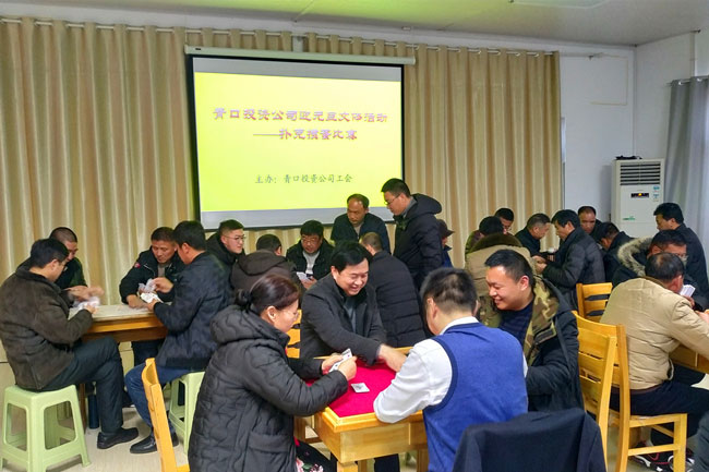 27日,在職工活動(dòng)室,約50名員工參加了撲克牌摜蛋比賽。賽前選手通過抽簽決定對(duì)手,采取淘汰賽方法進(jìn)行。比賽中參賽選手聚精會(huì)神、密切配合、精確計(jì)算、謹(jǐn)慎出牌。對(duì)陣雙方比牌技、比智慧、賽成績(jī)、賽友誼。每一局比賽結(jié)束,不時(shí)傳出參賽選手懊悔和興奮的唏噓聲,也有旁觀者贊嘆和惋惜的評(píng)價(jià),比賽就在這樣時(shí)而緊張、時(shí)而熱烈的氣氛中進(jìn)行。經(jīng)過激烈、公平、公正的角逐,黃沙分場(chǎng)代表隊(duì)的劉英軍、李召田獲得冠軍,米業(yè)營銷的的嚴(yán)鑫、葛蘇獲得亞軍。