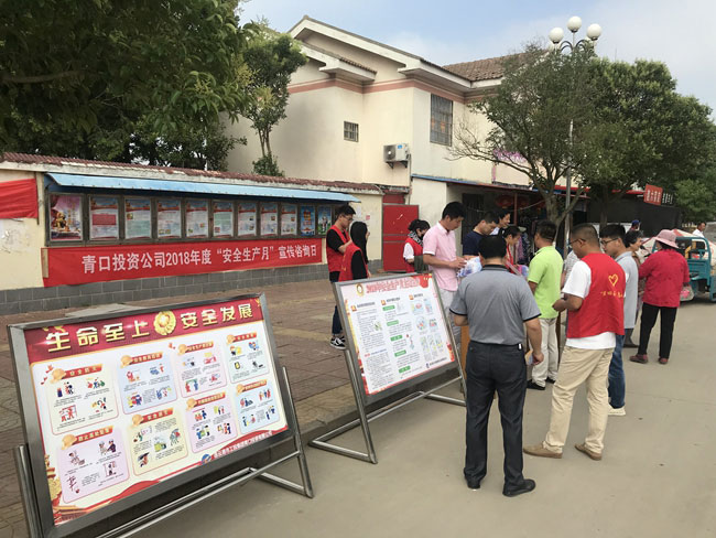6月14日上午,青口投資公司舉行以“生命至上,安全發(fā)展”為主題的“安全生產(chǎn)月”宣傳咨詢?nèi)栈顒?dòng)。張貼安全月主題掛圖12幅,展板5塊,發(fā)放《安全月主題》、《急救自救互救知識(shí)》、《用電安全十不準(zhǔn)》、《電動(dòng)車安全知識(shí)普及》等宣傳單200余張。活動(dòng)現(xiàn)場(chǎng),公司將“鹽田玉”大米作為小禮品向職工群眾發(fā)放。通過宣傳咨詢?nèi)栈顒?dòng)以提高企業(yè)安全生產(chǎn)意識(shí)和廣大職工群眾安全素質(zhì),有利于宣傳安全文化、安全生產(chǎn)管理制度、事故預(yù)防與處理及安全技能知識(shí),更有利于宣傳企業(yè)在開展安全建設(shè)與管理過程中形成的優(yōu)秀成果,為企業(yè)營造潤物無聲的安全文化意境,讓職工群眾深受教育、感悟常新。 (安技部)