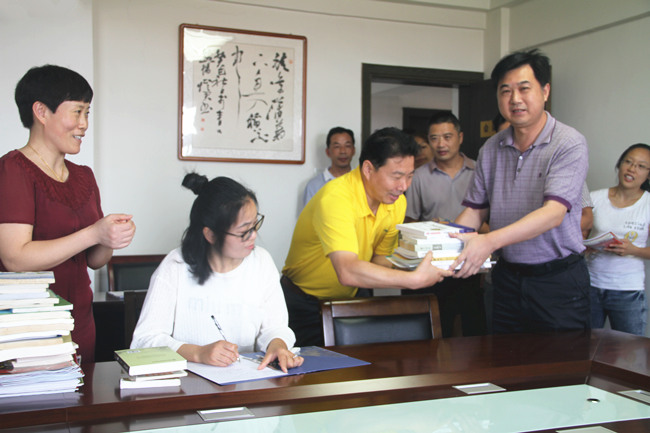 8月16日上午,青口投資公司機(jī)關(guān)支部舉行圖書捐贈活動,公司董事長、黨委書記胡傳法帶頭捐贈圖書十二本。