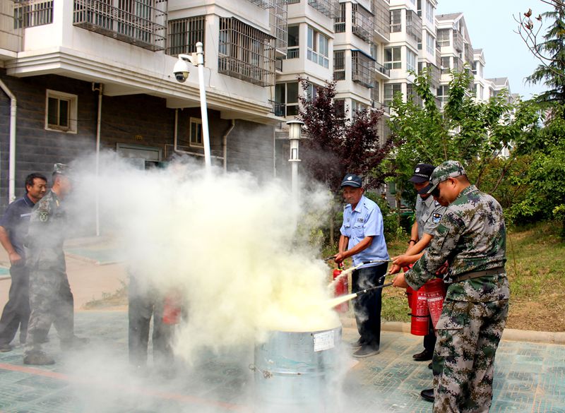 活動先在公共場地,由專業(yè)安全員講解消防常識和滅火器材的使用方法,并現(xiàn)場演示如何正確使用滅火器滅火。后選取7號樓開展突發(fā)火災(zāi)的人員疏散、撲滅火災(zāi)模擬演習。在演練結(jié)束后,專業(yè)消防技術(shù)員指出演練過程中的不足和樓房滅火方法技巧,為我公司今后的消防應(yīng)急措施提供寶貴經(jīng)驗,真正做到有備無患、防患于未“燃”。