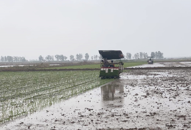 6月4日,大新農場搶抓農時,全面開始水稻插秧工作,插秧機來回穿梭作業(yè),田間地頭一派忙碌景象。當天,組織插秧機13臺,秧苗轉運車6臺次,一天可以完成插秧作業(yè)550余畝。(王 璐)