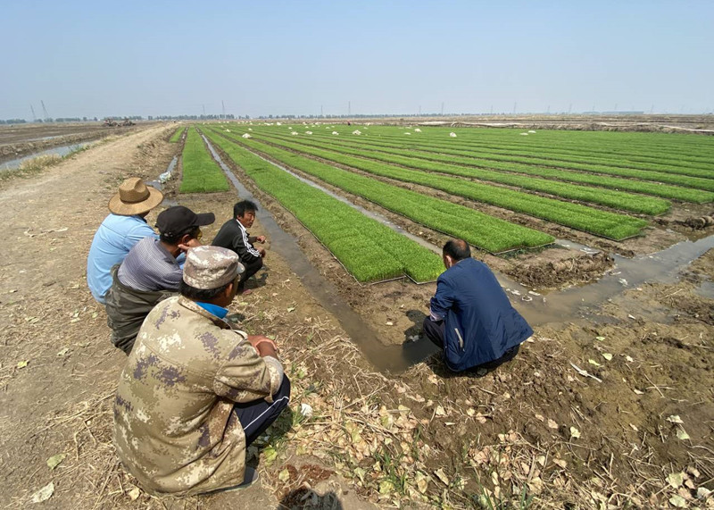 隨著氣溫攀升,5月21日,大新農(nóng)場已有種植戶開始對軟盤育秧的水稻小苗揭去覆蓋的薄膜,農(nóng)場班子成員奔走在田間地頭,查看秧苗生長情況,做好技術指導,全程保障水稻生長,確保水稻增產(chǎn)增收。(王 璐)
