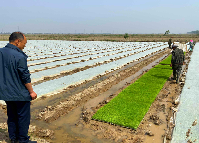 當(dāng)前水稻生產(chǎn)已全面進(jìn)入揭膜管理期,大新農(nóng)場把保苗護(hù)苗作為促進(jìn)穩(wěn)產(chǎn)增收的一件大事來抓,結(jié)合開展創(chuàng)先爭優(yōu)活動,管理人員進(jìn)入生產(chǎn)一線,督促條田管理工提前做好秧苗管理工作,為下一步插秧序時推進(jìn)打下堅(jiān)實(shí)基礎(chǔ)。(王 璐)