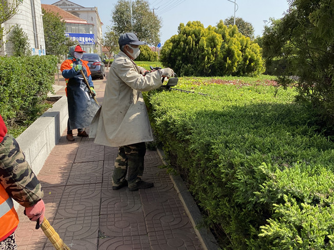 本次修剪采用人工與機(jī)械結(jié)合的方式,嚴(yán)格按照修剪標(biāo)準(zhǔn)和安全操作規(guī)范進(jìn)行。修剪現(xiàn)場(chǎng),養(yǎng)護(hù)工人背著草坪修剪機(jī),拿著耙子、掃帚,緊張而又忙碌的工作著,所經(jīng)之處煥然一新。經(jīng)過(guò)修剪的苗木有棱有角、橫平豎直、顯得格外精神,使得綠化帶整齊美觀。針對(duì)道路兩旁的行道樹(shù),采取了提前敲打果實(shí),預(yù)防香樟樹(shù)果實(shí)熟透掉落后,行人踩踏、過(guò)往車(chē)輛擠壓,造成果實(shí)的汁液弄臟道路,影響美觀。(牛瑩)