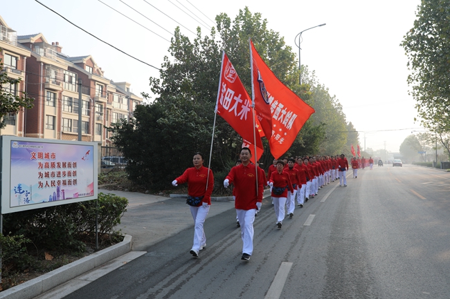 10月20日清晨,米業(yè)營銷公司聯(lián)合海州區(qū)微馬隊(duì)共同開展健步走活動(dòng),吸引了共三百余名健身愛好者參與其中。本次活動(dòng)旨在進(jìn)一步宣傳提高“鹽田玉”品牌的知名度,讓廣大市民在積極運(yùn)動(dòng)的過程中認(rèn)識“鹽田玉”、了解“鹽田玉”,拓寬“鹽田玉”宣傳渠道,提倡積極健康的生活方式,倡導(dǎo)廣大市民吃優(yōu)質(zhì)大米,過健康生活。本次健步走從海州區(qū)石棚山景區(qū)廣場出發(fā),內(nèi)環(huán)朐陽門、海州古城、秦東門大街返回,全程3.6公里。?(顧?益)