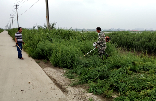 因雨季柴草生長茂盛,阻擋交通視線,造成安全隱患,黃沙適時對各交叉路口雜草進行清除,消除安全隱患,確保道路交通安全。 (黃阿鳳)