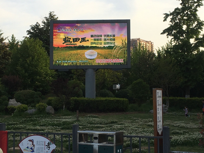 近日,米業(yè)營(yíng)銷(xiāo)中心為了做好鹽田玉大米的品牌宣傳,在蒼梧綠園電子屏投放宣傳圖片。(劉楊)