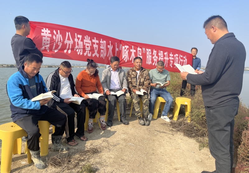 近日,黃沙分場黨支部開展水上“啄木鳥”服務提升行動,組織養(yǎng)殖戶黨員和技術(shù)能手聚在塘頭學習黨的二十大報告,開展養(yǎng)殖技術(shù)培訓和生產(chǎn)服務,切實打通黨建引領、服務養(yǎng)殖的“快速通道”。(盧伯斌)
