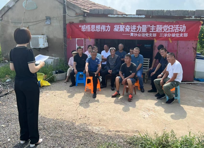 8月1日上午,三洋分場(chǎng)、黃沙分場(chǎng)黨支部,在三洋分場(chǎng)生態(tài)養(yǎng)殖示范塘聯(lián)合開(kāi)展“感悟思想偉力 凝聚奮進(jìn)力量”主題黨日活動(dòng),共同學(xué)習(xí)了《習(xí)近平著作選集》。