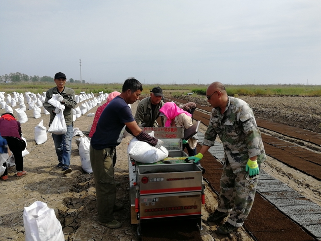 地頭播地龍育秧是最近兩年引進的機械化育秧方式,通過覆基質(zhì)、播種、再覆基質(zhì),一次性完成播盤任務,條田工之間自愿組合合作購買播種機,互相配合共同完成育秧作業(yè),大幅節(jié)約了成本、人工,減少了運輸、擺盤期間損苗現(xiàn)象;大棚塑盤暗化育秧,條田管理工互幫互助,自行組織運輸車輛轉(zhuǎn)運秧苗至田頭,將轉(zhuǎn)運時間由一天半壓縮至半天就能完成,并順帶空盤回大棚,不僅減少了轉(zhuǎn)運時間,大大降低了運輸成本,又促進了職工之間團結(jié)互助關(guān)系。