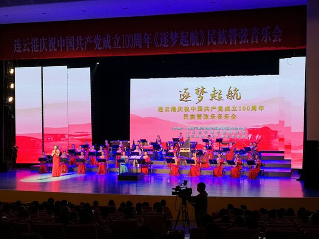 《逐夢(mèng)起航》連云港慶祝中國(guó)共產(chǎn)黨成立100周年大型民族管弦音樂(lè)會(huì),由中共連云港市委黨史學(xué)習(xí)教育領(lǐng)導(dǎo)小組辦公室、中共連云港市委宣傳部、連云港市文化廣電和旅游局主辦,連云港市演藝集團(tuán)承辦,演出單位是江蘇女子民族樂(lè)團(tuán)。音樂(lè)會(huì)分為《憶往昔崢嶸歲月》《舉旗幟山河復(fù)興》《再起航奮楫逐夢(mèng)》三個(gè)篇章,每個(gè)篇章以詩(shī)歌朗誦抒發(fā)時(shí)代情感,謳歌黨的光輝歷程。通過(guò)紅色旋律表達(dá)人民對(duì)黨的感恩之情,向黨的百年華誕獻(xiàn)禮。(神特宣)