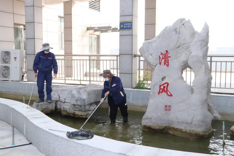 “春風(fēng)凌冽,水波蕩漾”,4月16日下午,公司綜合辦公室牽頭帶領(lǐng)后勤工作人員,對“清風(fēng)池”及周邊區(qū)域開展義務(wù)清淤整治工作。