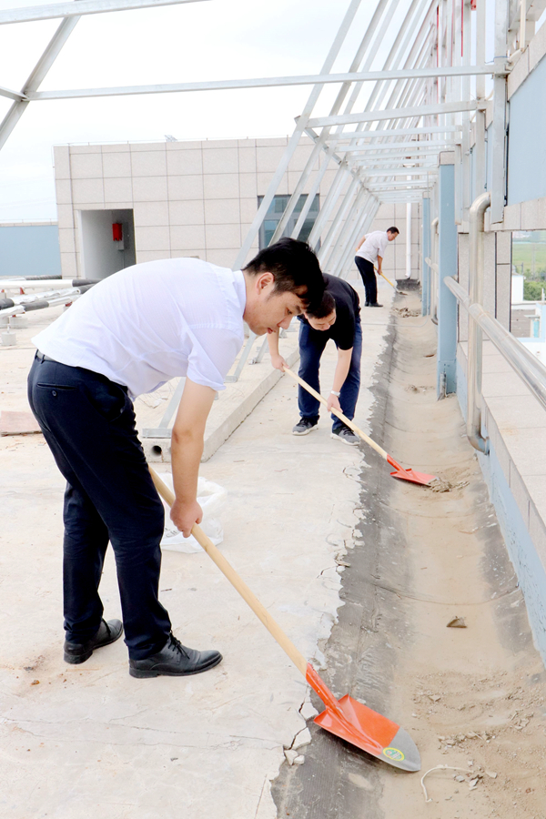 為凈化、美化公司辦公樓樓頂環(huán)境,消除積水隱患,8月26日上午,公司組織黨員、團(tuán)員青年志愿者開(kāi)展了專項(xiàng)清理整治行動(dòng)。志愿者不畏艱辛,對(duì)樓頂進(jìn)行了細(xì)致清掃,認(rèn)真疏通排水口,力爭(zhēng)陰雨天氣不再出現(xiàn)積水現(xiàn)象。(神特宣)