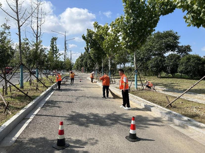 保障園區(qū)“塑新顏”。節(jié)日期間,開發(fā)區(qū)轄區(qū)的主干道上、公園、廣場、支路等公共綠地,隨處可見臺北(華茂)綠化養(yǎng)護人員堅守一線的忙碌身影,他們放棄與家人團聚,重點對玉竹路、佟圩路、銀臺路、242 省道等路段綠籬、模紋、草坪進行整形修剪,對堿廠南路等路段綠化帶內(nèi)低矮喬灌木進行打藥治蟲,對展覽中心、黃海大道等轄區(qū)內(nèi)及時清理綠化帶雜草、撿拾草根、干枝等綠化垃圾,保持綠化帶干凈整潔美觀。益豐園林分公司綠化班全員放棄節(jié)日休假,外拓市場,與綠化分公司聯(lián)動赴徐圩消防大隊院內(nèi)開展突擊修剪行動,他們不怕臟、不怕累,共修剪灌木球50余棵,灌木叢7000余平方米。