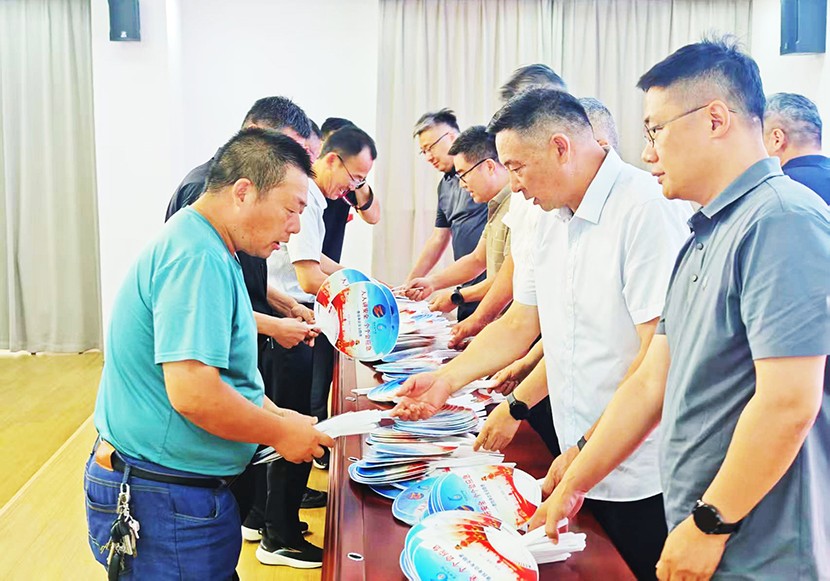 公司領(lǐng)導現(xiàn)場發(fā)放安全宣傳資料和安全宣傳扇,進一步提高干部職工安全生產(chǎn)意識,推動“安全生產(chǎn)月”活動走深走實。