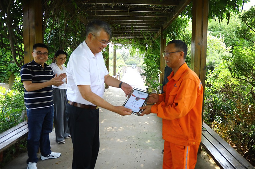 此次頒獎(jiǎng)打破傳統(tǒng)集中表彰模式,將頒獎(jiǎng)臺(tái)搬到生產(chǎn)建設(shè)最前沿,公司領(lǐng)導(dǎo)班子成員親自前往光伏安康驛站、創(chuàng)智綠園、大浦片區(qū)、云橋路施工現(xiàn)場(chǎng)、佟圩路施工現(xiàn)場(chǎng)、益豐園林園區(qū)6個(gè)一線點(diǎn)位,為獲獎(jiǎng)員工頒發(fā)榮譽(yù)證書(shū),并送上暖心祝福。當(dāng)公司領(lǐng)導(dǎo)將“星級(jí)員工”證書(shū)遞到員工手中時(shí),獲獎(jiǎng)?wù)唠y掩激動(dòng):“這份榮譽(yù)既是肯定,更是責(zé)任。我會(huì)繼續(xù)扎根基層,為臺(tái)北(華茂)貢獻(xiàn)全部力量!”