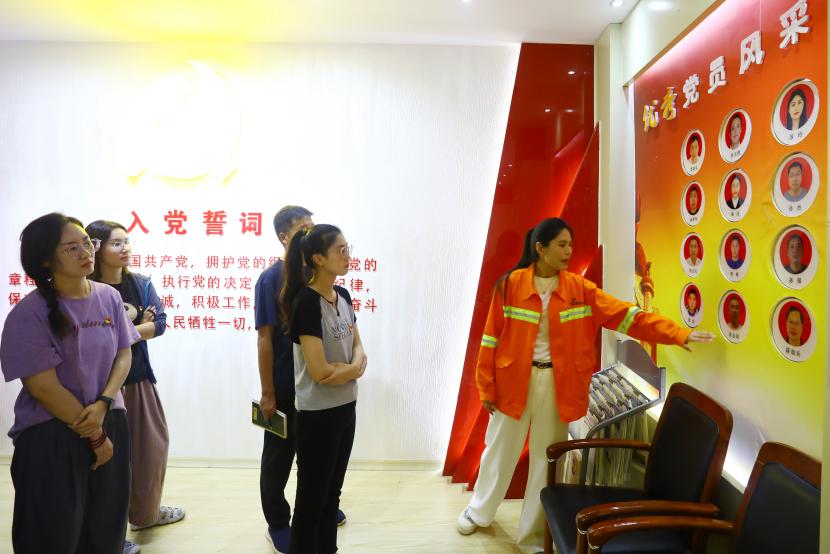 與會人員先后觀摩了環(huán)衛(wèi)、綠化分公司黨建室,環(huán)衛(wèi)分公司黃海大道班組王麗班組勞模工作室,參觀學(xué)習了綠化創(chuàng)智綠園班組三組聯(lián)建陣地建設(shè)及黨建特色工作,隨后一行觀摩了綠化分公司支委會工作例會。