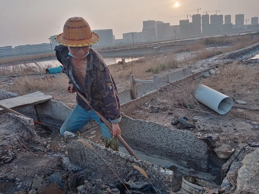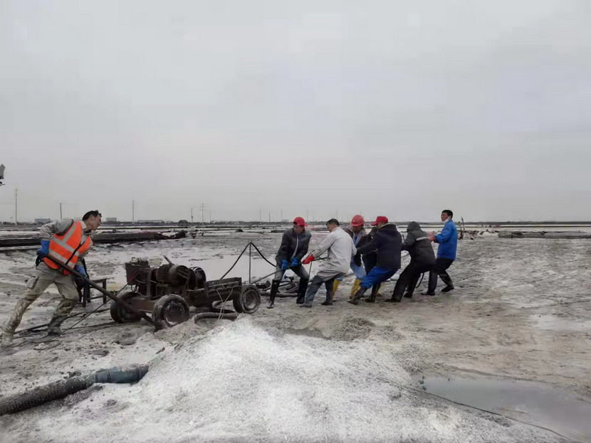 在海州灣大浦班組367畝的礦鹽生產(chǎn)灘地上,遠(yuǎn)遠(yuǎn)的看去,只有三個人在灘地上忙碌,分別是班長孫和華和兩名鹽工。在十月份的時候,原大浦班組班長夏軍帶領(lǐng)第一批鹽工前往海福特,孫和華因?yàn)樯眢w原因選擇了留下,此時,生產(chǎn)班組人數(shù)減半,只剩下三人。新產(chǎn)業(yè)要開發(fā),礦鹽復(fù)產(chǎn)也要攻堅(jiān),當(dāng)公司征求部分職工意見,誰愿意來做大浦班組的班長,維持礦鹽正常生產(chǎn)。大家心里都明白,這不是一份榮譽(yù),而是一份責(zé)任,是千斤重?fù)?dān),一片生產(chǎn)灘地只有三人,這是一個燙手山芋的活。這時,孫和華站了出來,他說:“我是一名老黨員了,黨員就是要平時看出來、困難站出來、危急豁出來,為其他同志樹立黨員先鋒模范作用,這份擔(dān)子,理應(yīng)我來挑!”