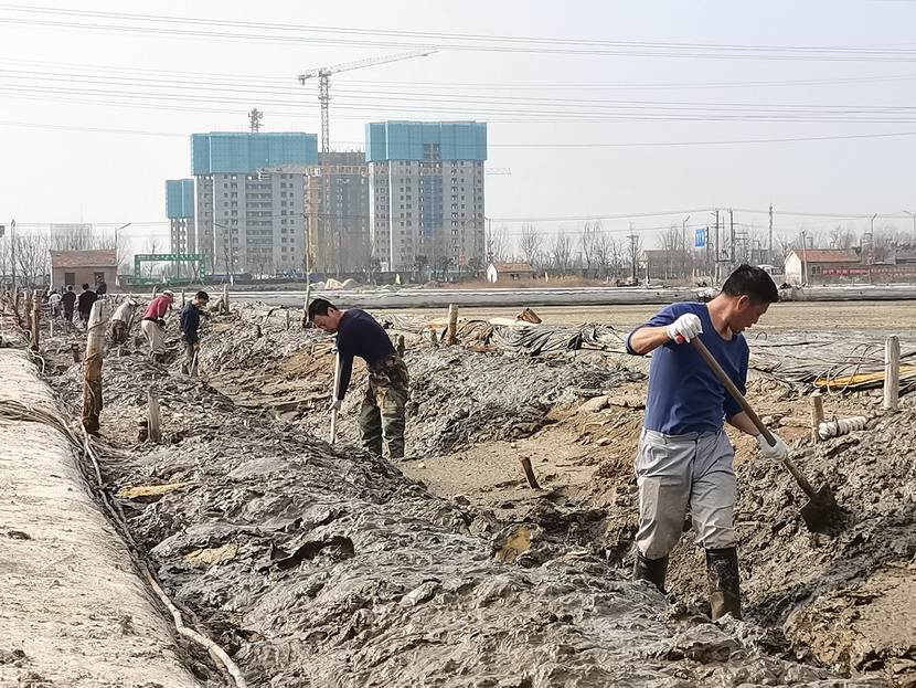 礦鹽復(fù)產(chǎn)項目部,聘請日曬制鹽專家王緒前進(jìn)行工藝指導(dǎo),聘請勞模朱春年帶領(lǐng)團(tuán)隊攻堅。復(fù)產(chǎn)戰(zhàn)役從2021年12月就打響了,春節(jié)的時候,他們僅休了三天假,大年初三全部到崗,一鍬一鍬挖泥通溝,一條一條池堰加高整平,一塊一塊鹽田清理壓實......到2月,他們硬是把征地后廢棄許久的鹽田和邊角地整理成礦鹽基地,結(jié)晶池面積達(dá)1950公畝,達(dá)產(chǎn)可產(chǎn)原鹽20000噸。