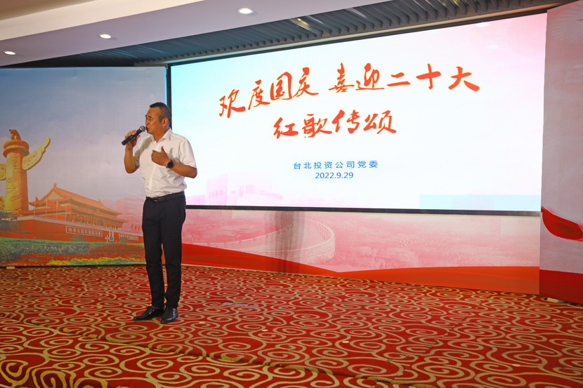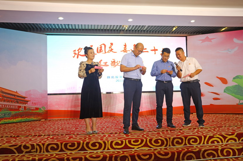 為慶祝新中國成立73周年,9月29日下午,臺北投資公司舉辦了“歡度國慶·喜迎二十大”紅歌傳頌會,來自各直屬單位和機(jī)關(guān)廣大員工匯聚一堂,用最甜美的聲音歌唱祖國、用最真摯的詩詞贊頌祖國,現(xiàn)場亮點(diǎn)頻現(xiàn)、精彩紛呈。