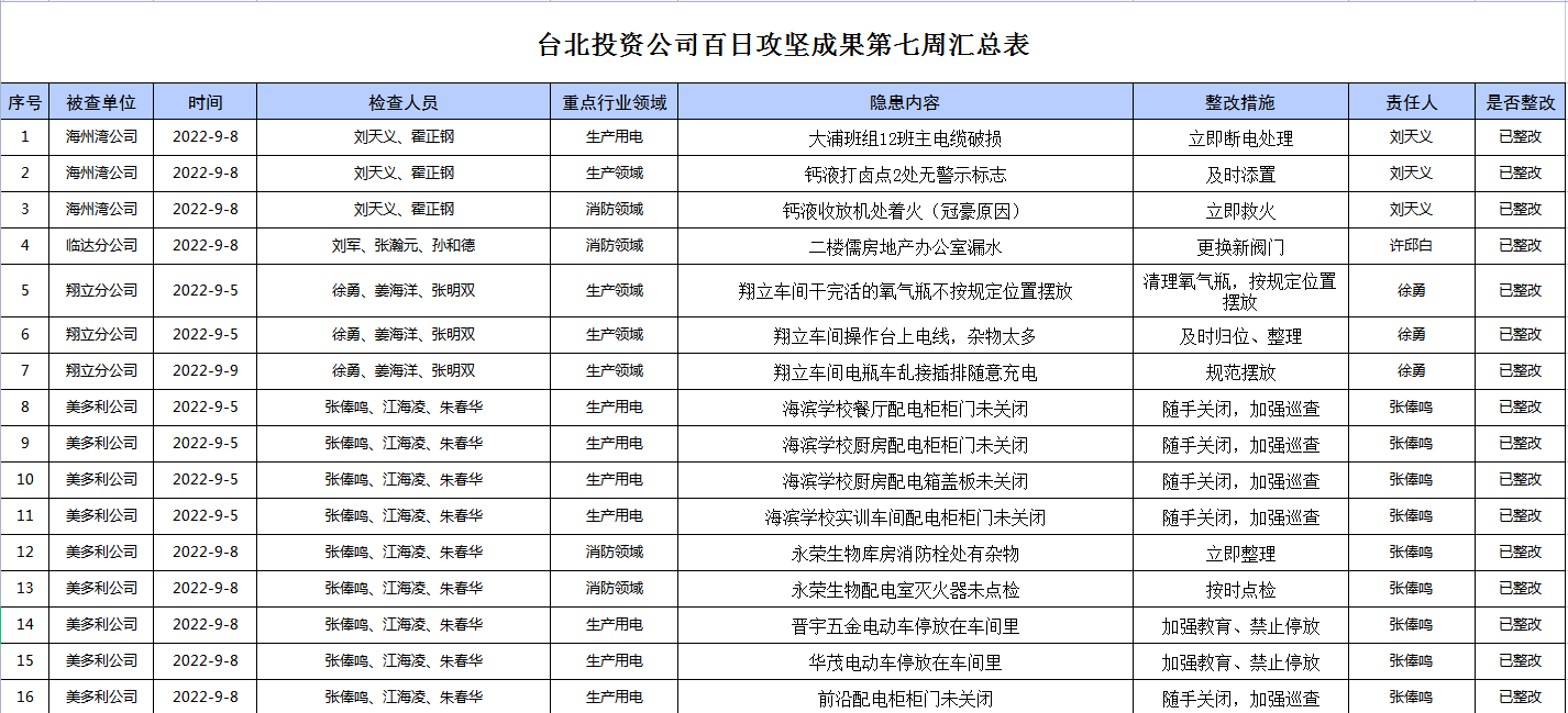 臺(tái)北投資公司百日攻堅(jiān)成果第七周匯總表