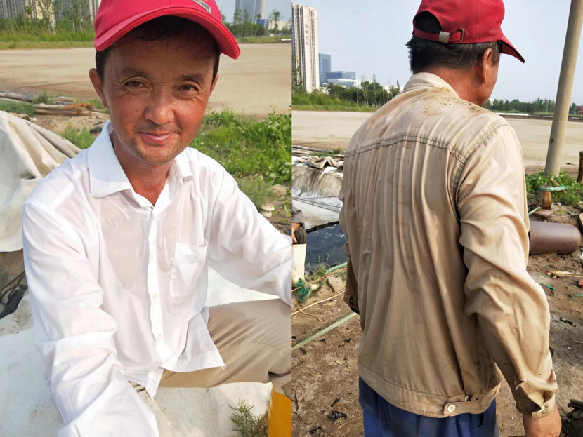 礦鹽班組,搶抓汛期難得的晴好天氣,清晨5點,就在灘地上忙碌起來,汗水模糊了雙眼,額頭的汗水順著帽檐往下滴落,身上的衣服一直都是濕漉漉的。