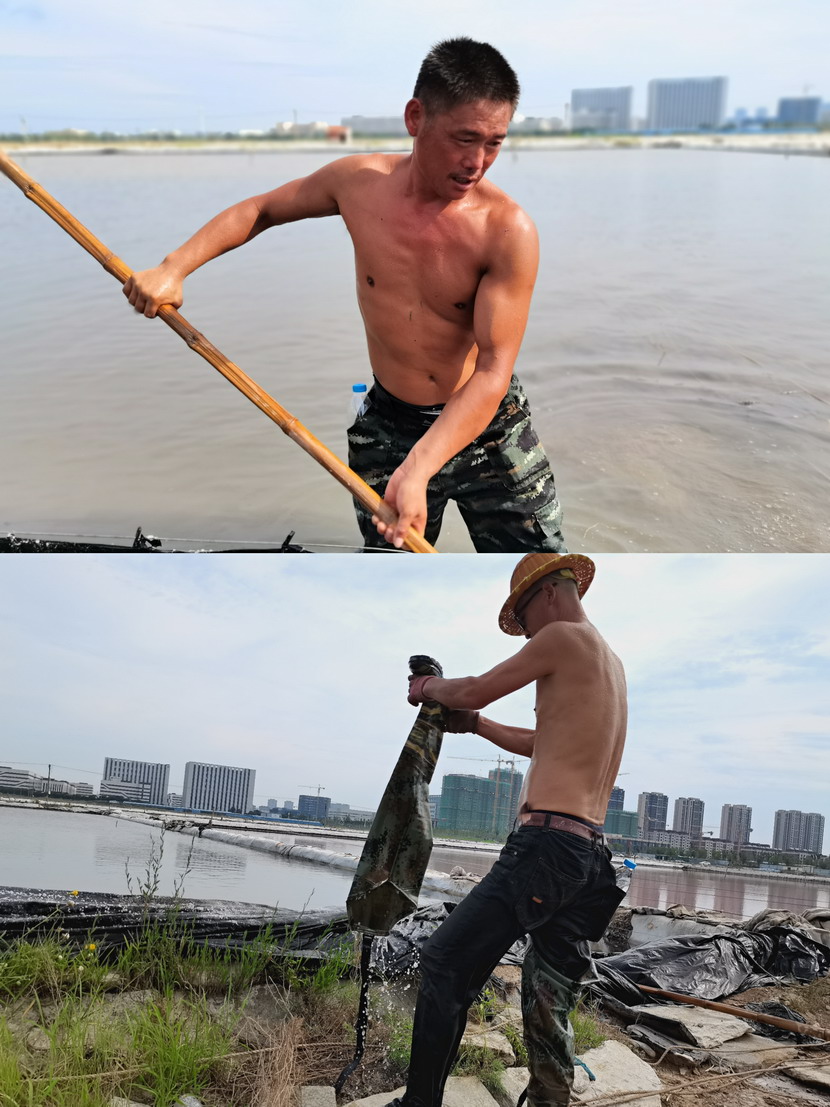 先鋒泵站,程輝師傅撩起工作服擦了擦臉上的汗水,繼續(xù)將潛水泵安置到已廢棄的灘地里,把灘地里的雨水抽干,將廢棄的灘地利用起來晾曬低濃度的鈣液,解決銷售旺季成品鈣液供不應求難題。