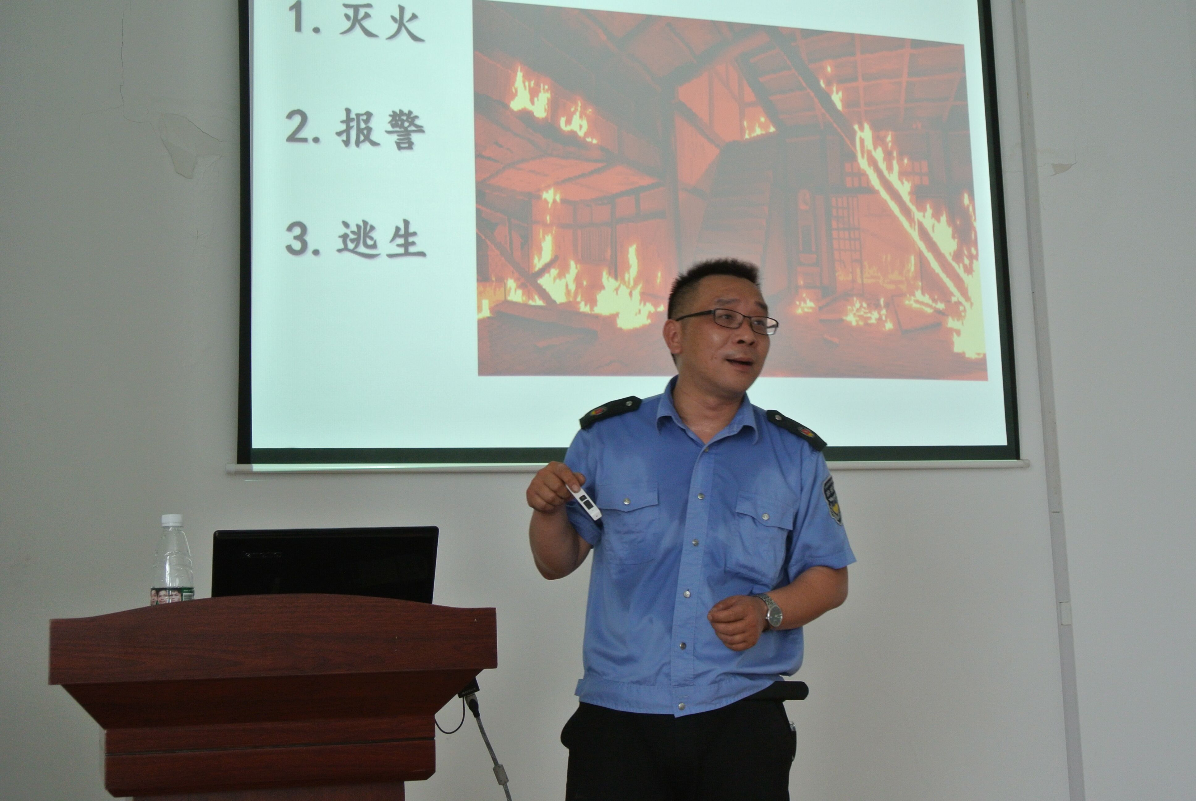 此次演練活動由消防理論知識培訓(xùn)和應(yīng)急實(shí)操演練兩個部分構(gòu)成。演練前,葉教官對參訓(xùn)人員進(jìn)行了演練規(guī)則、自我保護(hù)等方面的培訓(xùn)與教育,熟悉演練任務(wù)和角色,并向大家講解了部分典型案例,普及消防安全責(zé)任落實(shí),日常消防安全隱患,應(yīng)急處理措施等??破樟烁煞蹨缁鹌鞯氖褂梅椒ê妥⒁馐马?xiàng),現(xiàn)場人員親自體驗(yàn)了使用滅火器滅火的過程,真正的掌握了正確使用滅火器的操作方法。