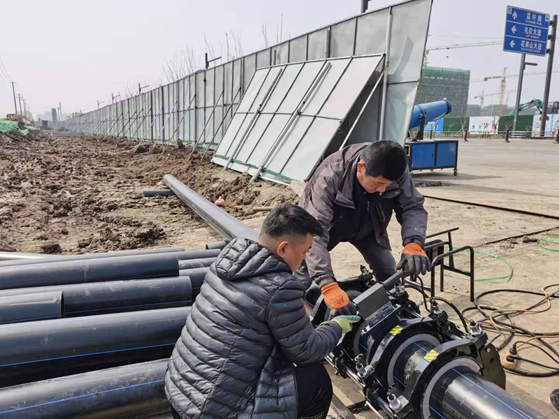 今天恰逢二月二龍?zhí)ь^,雖然是星期天,但卻絲毫不影響翔立人干事創(chuàng)業(yè)的龍馬精神。為了搶工期,分成三個(gè)攻堅(jiān)組,兩臺(tái)熱熔焊機(jī)分組同步進(jìn)行,一個(gè)運(yùn)輸組馬不停蹄保證管道的運(yùn)送供給。全體參與工程人員承諾“五天拿下全部工程量,再塑翔立鐵軍新形象”高亢的口號(hào)此起彼伏,嘹亮的誓言回響在施工現(xiàn)場(chǎng)上空,堅(jiān)毅的精神面貌再度彰顯出“拉得出、沖得上、打的贏” 的鐵軍風(fēng)范。