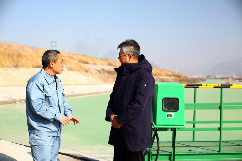 針對鈣液原料水環(huán)保參數(shù)超標(biāo)等問題,董事長王德志一行現(xiàn)場勘察堿業(yè)公司氨堿上清液,堿業(yè)公司渣場管理處主任盧全才等領(lǐng)導(dǎo)詳細(xì)介紹近期堿廠的環(huán)保整改措施,首先是進(jìn)一步做好酸堿平衡,確保原料水PH值堿度指標(biāo)不超標(biāo),其次是降低氨氮濃度,確保不超標(biāo)。在此基礎(chǔ)上,堿業(yè)公司在氨堿上清液送水通道安裝水質(zhì)在線監(jiān)測設(shè)備,確保及時(shí)發(fā)現(xiàn)異常,做到第一時(shí)間處置。