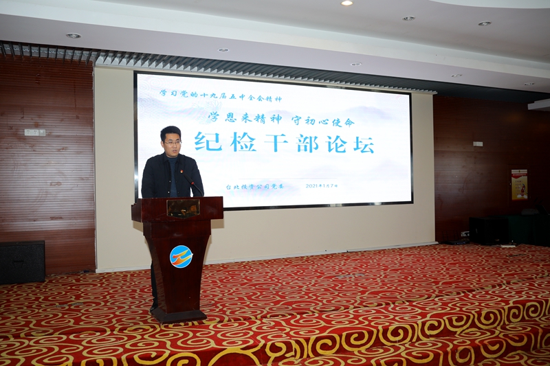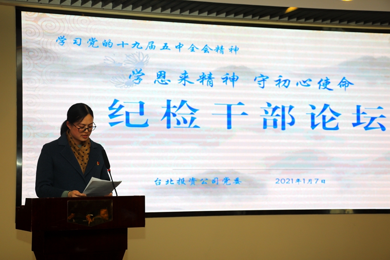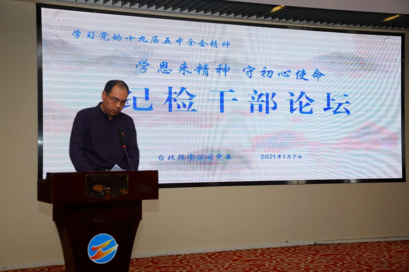 “感受偉人風(fēng)范,踐行初心使命……”從臺(tái)北投資公司十樓會(huì)議室里傳來(lái)鏗鏘有力的演講聲。為深入推進(jìn)“學(xué)恩來(lái)精神、守初心使命”專(zhuān)題教育活動(dòng),鍛造忠誠(chéng)干凈擔(dān)當(dāng)?shù)?/span>紀(jì)檢干部隊(duì)伍,1月7日下午,公司舉辦紀(jì)檢干部專(zhuān)題大講堂。公司領(lǐng)導(dǎo)班子成員,各單位、部門(mén)中層副職以上管理人員參加了活動(dòng)。