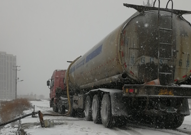 從不因天氣影響而中斷的鈣液銷售工作,風(fēng)雪中仍在如火如荼的進行著。負(fù)責(zé)鈣液開票發(fā)放人員仔細(xì)的檢查并認(rèn)真注視液位流量計,嚴(yán)謹(jǐn)記錄,嚴(yán)格遵守“一車一票制度”,滿載鈣液的槽罐車在風(fēng)雪中緩緩前行,乘載著“瑞雪兆豐年”的希望!