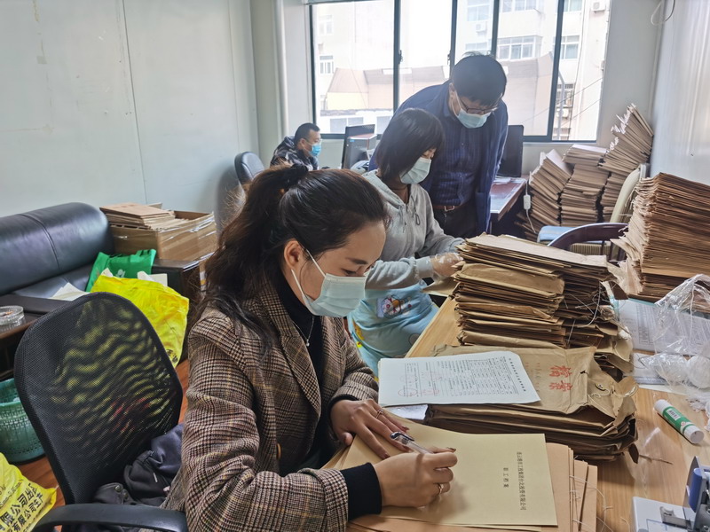 在檔案整理現(xiàn)場,大家通力配合,有的整理檔案、有的輸入電腦、有的仔細(xì)核對,加班加點(diǎn)做好退休人員基本信息和檔案整理、登記造冊等工作,有條不紊、熱火朝天。工作人員層層壓實(shí)責(zé)任,細(xì)化任務(wù)分工,編制移交清單,對各個時期的人事檔案材料及時進(jìn)行梳理、鑒別、整理、裝訂,確保內(nèi)容真實(shí)準(zhǔn)確、材料齊全完整。此次涉及移交檔案1580卷,已經(jīng)完成1300余卷,其余部分將于近期陸續(xù)完成。