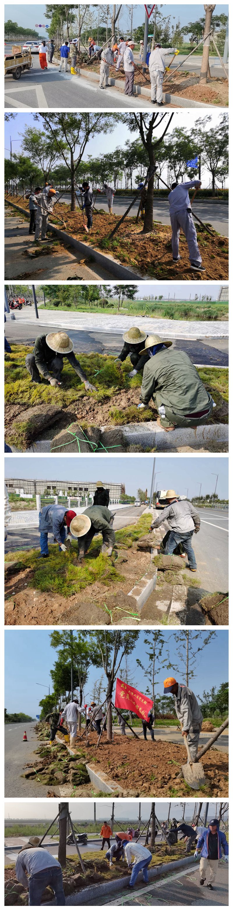 35度的高溫,6000平方米草坪鋪設(shè)任務(wù),一個工作日的工程時限,6點集合,7點施工,來自翔立分公司、大浦工區(qū)、海州灣公司的30名突擊隊員······一一普通的數(shù)字背后是臺北“鐵軍”臨危受命,面對“艱難險阻”施工任務(wù),一往無前,偏向虎山行的英雄氣概和恪守初心、不負使命的擔當作為。