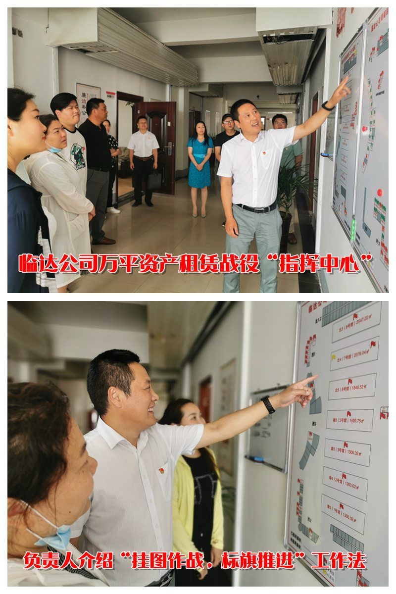 “分解任務(wù),每天出租180平方,我們用掛圖作戰(zhàn)工作方法,在困難中找優(yōu)勢,在優(yōu)勢中找方法,將集中資產(chǎn)劃分片區(qū),分而治之,實(shí)行一個片區(qū)一個目標(biāo)導(dǎo)向,一個片區(qū)一個工作方法”“臨鋒而行,達(dá)道致遠(yuǎn),這是臨達(dá)公司的立企宗旨,我們是這么喊,也是這么干的”“臨達(dá)的年輕同志們是我們能夠突破7200平方任務(wù)的秘密武器,他們上門商談至天黑,周六周日讓他們休息都不休息,依然堅(jiān)守崗位跑市場”在臨達(dá)公司的“作戰(zhàn)指揮中心”,聽取負(fù)責(zé)人杜洪波的介紹后,參加采風(fēng)的同志都忍不住豎起大拇指為先拔頭籌,超額超時完成任務(wù)的臨達(dá)全體“指戰(zhàn)員”點(diǎn)了個贊。