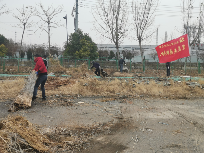 活動現(xiàn)場,鮮紅的黨旗迎風飄揚,支部黨員、職工手拿鐵锨、鐮刀、掃帚等工具,對場地上的垃圾、雜物進行了清理。特別是經(jīng)過風吹日曬的生活垃圾,散發(fā)出陣陣酸臭味。突擊隊員們分工協(xié)作,不怕臟,不怕累,干勁十足,經(jīng)過三個多小時的辛勤勞動,場地環(huán)境有了很大的改善。