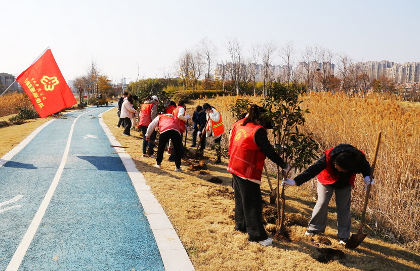 ? ? 都說(shuō)女人能頂半邊天,不僅在工作上獨(dú)當(dāng)一面,掄起鐵锨來(lái)也有“女漢子”的風(fēng)采。在植樹活動(dòng)中,女職工們齊心協(xié)力,有的搬運(yùn)樹苗、有的挖坑育樹、有的培土澆水,大大小小百余棵樹木很快就玉立在昌圩湖公園健康小路兩側(cè),為昌圩湖公園增添了一份綠意。
